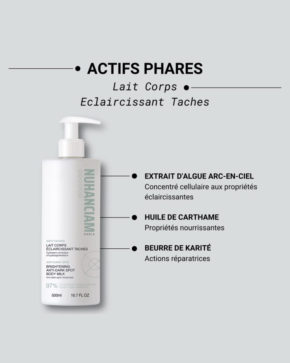 Routine complète de 5 soins complémentaires pour atténuer les taches pigmentaires sur le visage, le contour des yeux, les zones sensibles et le corps. Formulée avec de l’hexylresorcinol et de la niacinamide, elle unifie le teint, hydrate et améliore la texture de la peau. Des résultats visibles dès 15 jours d’utilisation.